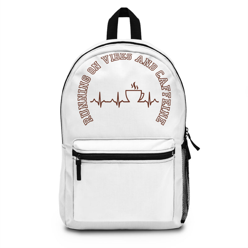Running on Vibes & Caffeine Backpack - Perfect for Students, Coffee Lovers, Daily Use, Gifts, Travel